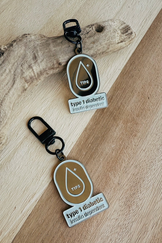 Type 1 Diabetic Key Charm – Glossy Chrome Black